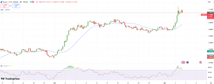 The EUR/USD worth retreats from the multi-month prime above 1.1100. The 4-hour chart reveals two consecutive bearish pin bars, indicating a pause within the bullish momentum. Nonetheless, the value is properly above the pivot level at 1.1000. Breaking under the 1.1000 space might set off a pointy sell-off, focusing on 1.0920 forward of 1.0880.
