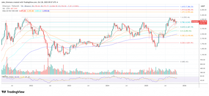 Ethereum-focused treasury firm ETHZilla stated it has bought roughly $40 million value of ether to fund ongoing share repurchases, a maneuver aimed toward closing what it calls a “vital {discount} to NAV.” In a press assertion on Monday, the corporate disclosed that since Friday, October 24, it has purchased again about 600,000 frequent shares for roughly $12 million underneath a broader authorization of as much as $250 million, and that it intends to proceed shopping for whereas the {discount} persists.