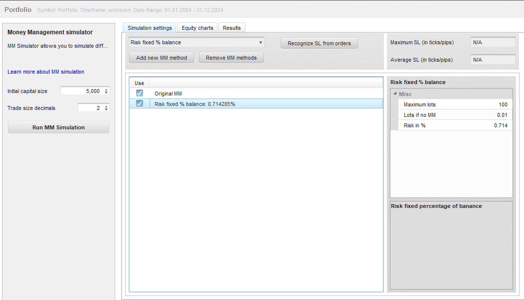 - Utilized the precise danger of 0.714% per commerce to all transactions, accounting for capital modifications after every commerce.
