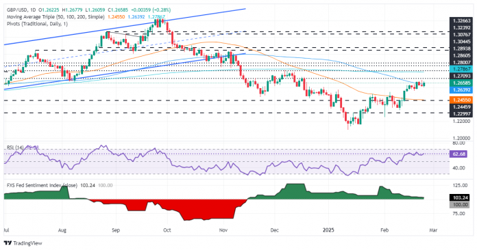 GBP/USD is impartial to upward biased, exchanging fingers above the 100-day Easy Shifting Common (SMA) at 1.2648. A every day shut above the latter might open the door to clear 1.2700, adopted by the 200-day SMA at 1.2786. However, if GBP/USD struggles at 100-day SMA and drops under 1.2600, sellers might drive costs towards the February 5 peak turned help at 1.2549.