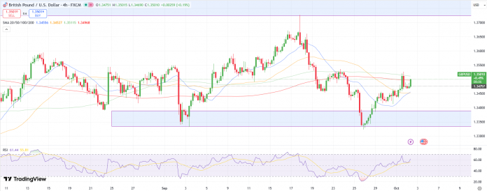 - GBP/USD forecast turns up, testing 1.3500 as weak US labor information and the federal government shutdown stress the greenback.