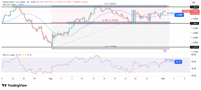 On the technical aspect, the GBP/USD worth trades above the 30-SMA, with the RSI above 50, suggesting a bullish bias. Nonetheless, the worth stays trapped between the 1.3401 assist degree and the 1.3575 resistance degree. Though bulls have proven power, they’re struggling to interrupt away from the 30-day SMA.