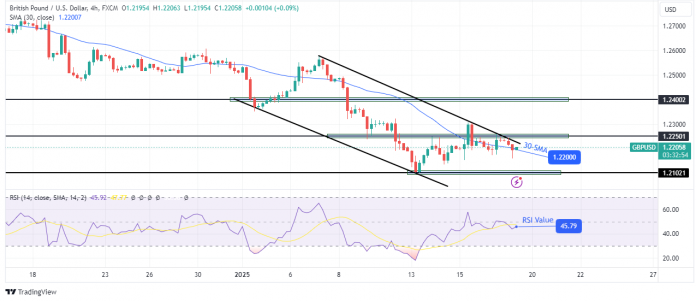 On the technical aspect, the GBP/USD worth is on the verge of breaking under the 30-SMA after a latest rebound to the 1.2250 resistance degree. Regardless of the break above the SMA, the bearish bias stays sturdy. Furthermore, the RSI trades under 50, suggesting sturdy bearish momentum.