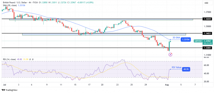 The GBP/USD value evaluation reveals some reduction for the pound because the greenback collapses on a poor US jobs report. Sterling recorded the worst month in 3 years in July on account of UK financial considerations. On the similar time, the greenback rallied after Trump imposed tariffs on many extra nations on Friday.