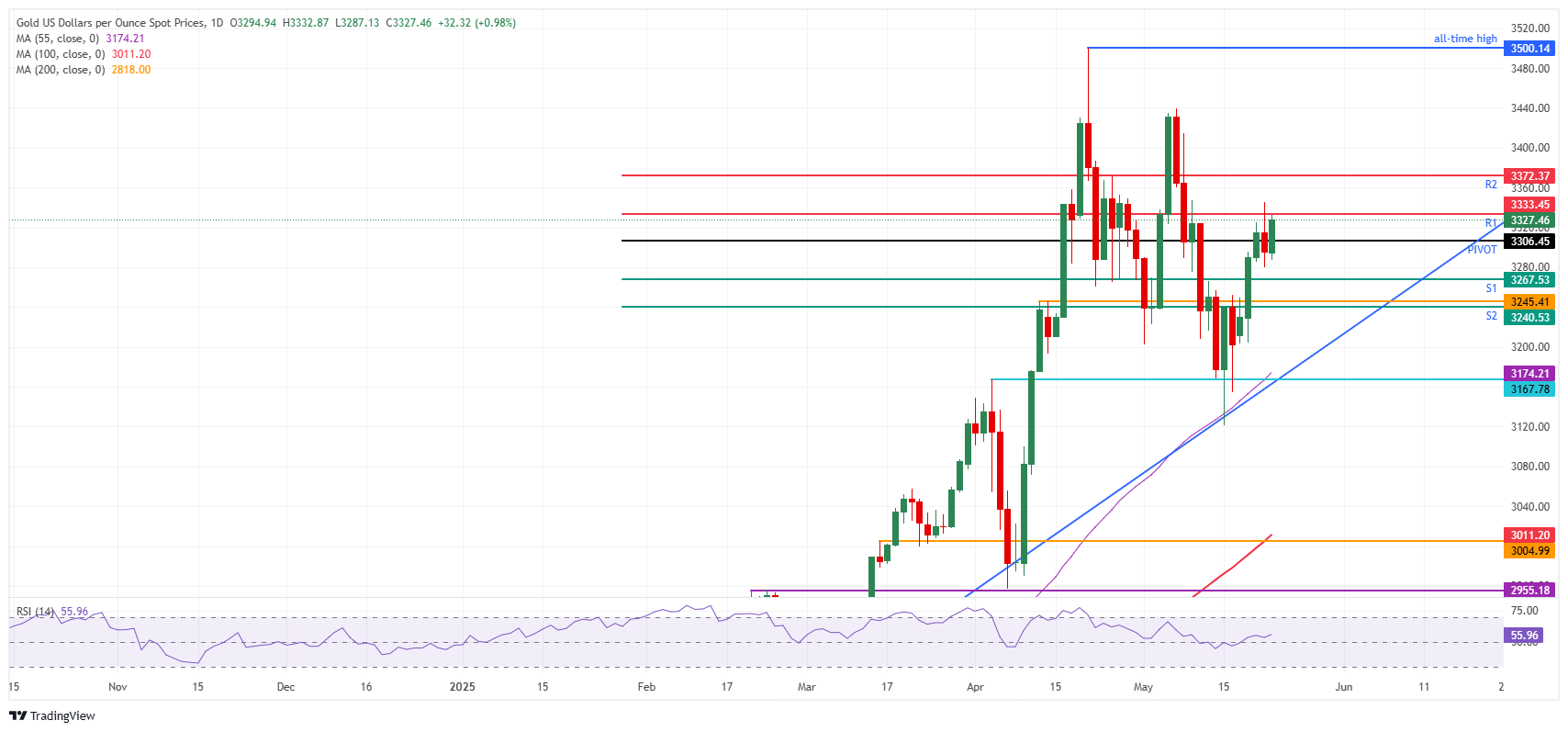 Gold (XAU/USD) value extends its weekly features, buying and selling close to $3,329 on the time of writing on Friday, up almost 1% on the day, on a brand new tailwind for the secure haven valuable steel. The spending invoice from United States (US) President Donald Trump handed by the Home of Representatives on Thursday and is now on its technique to the Senate. Merchants are nervous that the spending invoice will solely add extra US debt, whereas revenue from tariffs stays to be seen as sufficient to supply funding for all of the spending.
