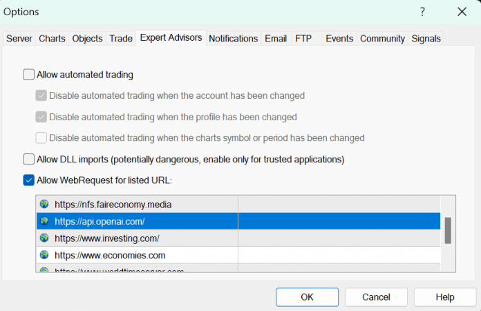 B. In Choices -> Professional Advisors. Please tick “Permit WebRequest for listed URL”. And add web site record under: