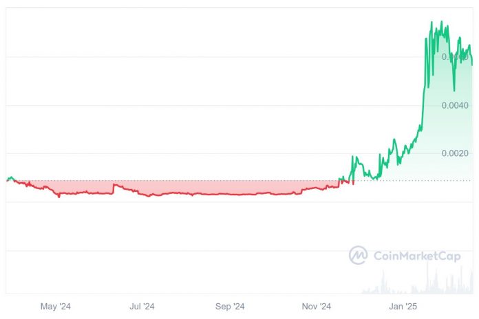 Toshi has gained main consideration following a 41.73% worth surge up to now month, reaching a worth of $0.0006667. Since late January, the token has been on a gentle upward climb, fueled by its itemizing on BybitSpot. This new itemizing has expanded its accessibility, resulting in a big enhance in worth over the previous month. With sturdy neighborhood backing, Toshi is rapidly making a reputation for itself within the meme coin sector.