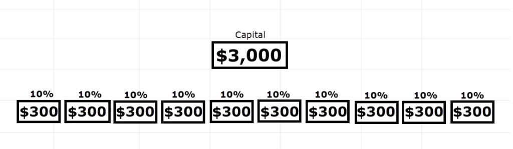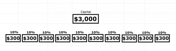 For instance, let’s say you will have a capital of $3,000, and also you’re allocating 10% of your capital per inventory.