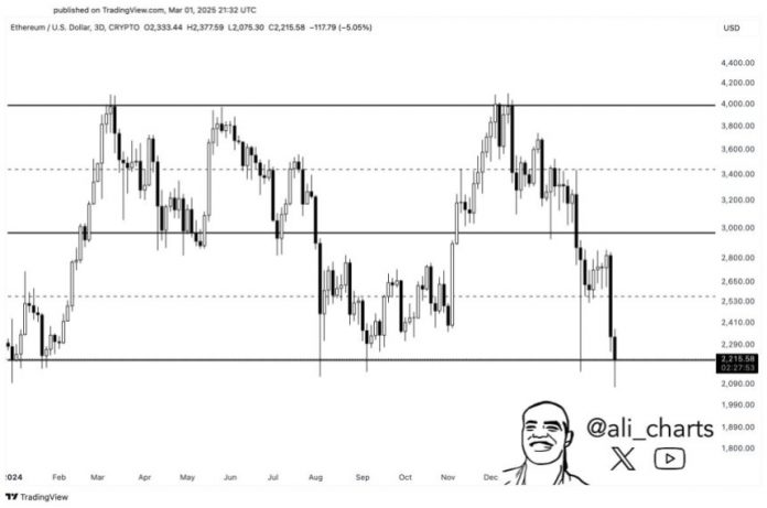 Ethereum testing long-term support level | Source: Ali Martinez on X