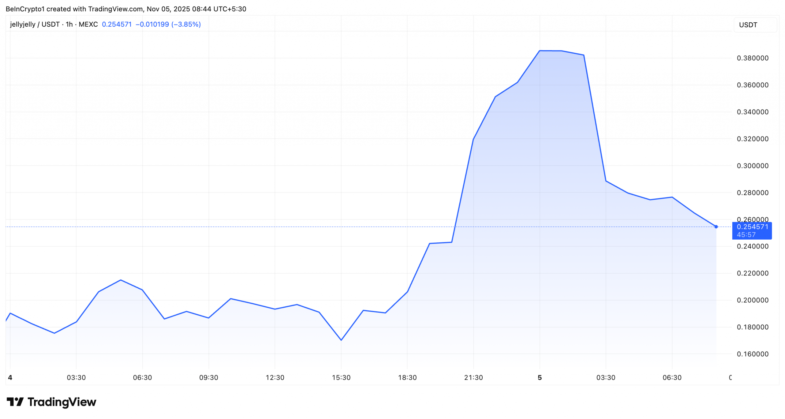 Nonetheless, the meme coin confronted a modest correction after. On the time of writing, JELLYJELLY traded at $0.25, nonetheless up 31.7% previously 24 hours.