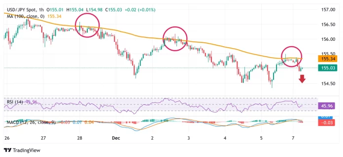On the flip aspect, any significant restoration try is prone to confront a stiff barrier close to the 155.35 area, or the 100-hour SMA. Some follow-through shopping for past Friday’s swing excessive, round mid-155.00s, would possibly set off a short-covering transfer and permit the USD/JPY pair to reclaim the 156.00 mark. The momentum may lengthen additional in direction of the subsequent related hurdle close to the 156.60-156.65 area en path to the 157.00 spherical determine.