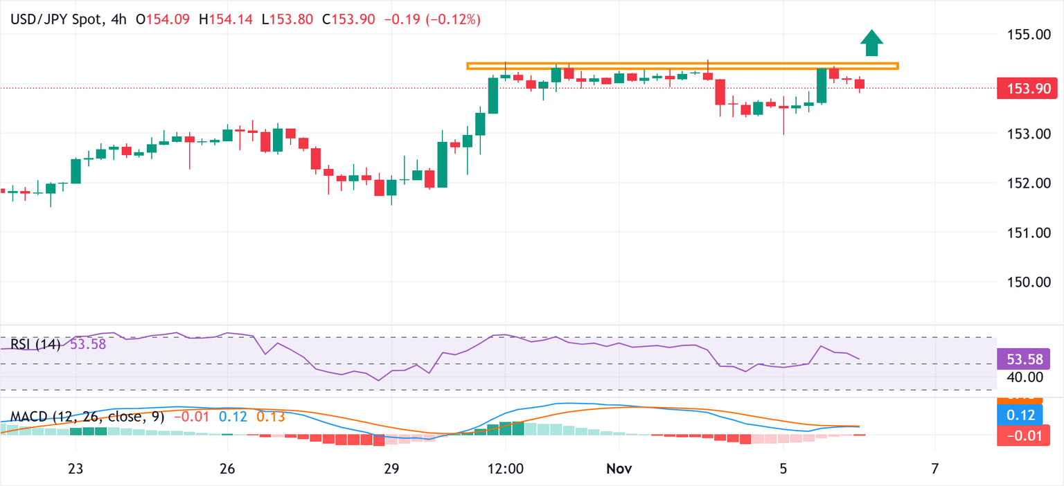 - The US Greenback shot to its highest degree since late Might yesterday and stays effectively supported by diminished bets for one more rate of interest lower by the US Federal Reserve in December. Furthermore, the upbeat US macro information supplied a further enhance to the USD and contributed to the USD/JPY pair’s intraday restoration from sub-153.00 ranges.