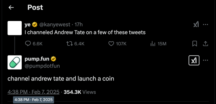 Most notably, Solana-based token era and buying and selling platform Pump.enjoyable responded to considered one of West’s posts — about “channeling Andrew Tate”, encouraging him to launch his personal cryptocurrency. Nonetheless, Kanye West seems to not be contemplating the platform for his crypto endeavors.