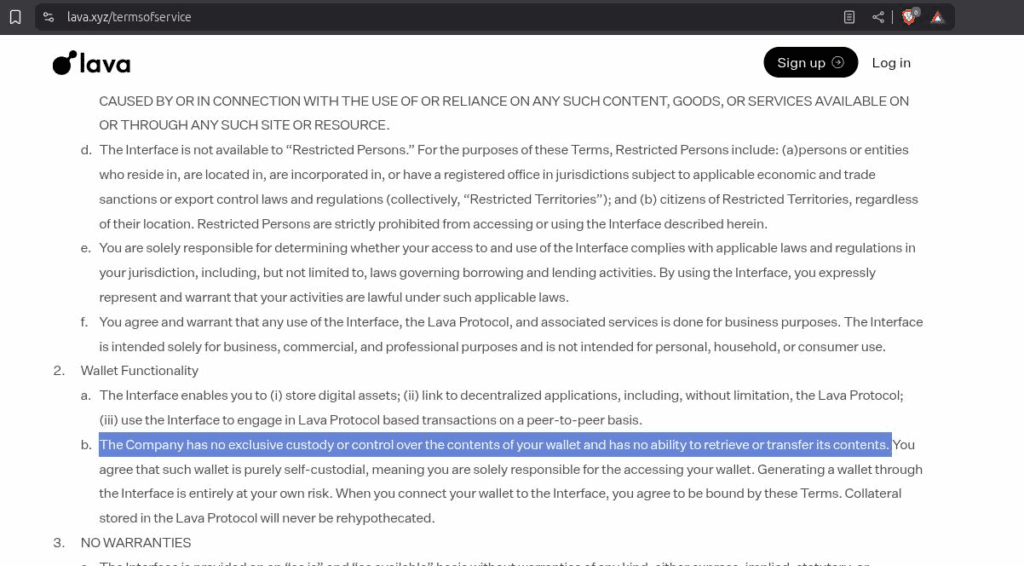 The pivot has additionally raised questions concerning the firm’s regulatory standing and licenses, as centralized and custodial bitcoin-backed mortgage suppliers are arguably regulated below extra conventional frameworks. Such laws have a tendency to not apply to DeFi-style self-custody merchandise, exactly as a result of consumer funds stay below consumer management, slightly than below the whole management of a 3rd occasion. With belief custodial belief turning into the Lava mannequin in a single day, what regulatory standing does the corporate fall below?