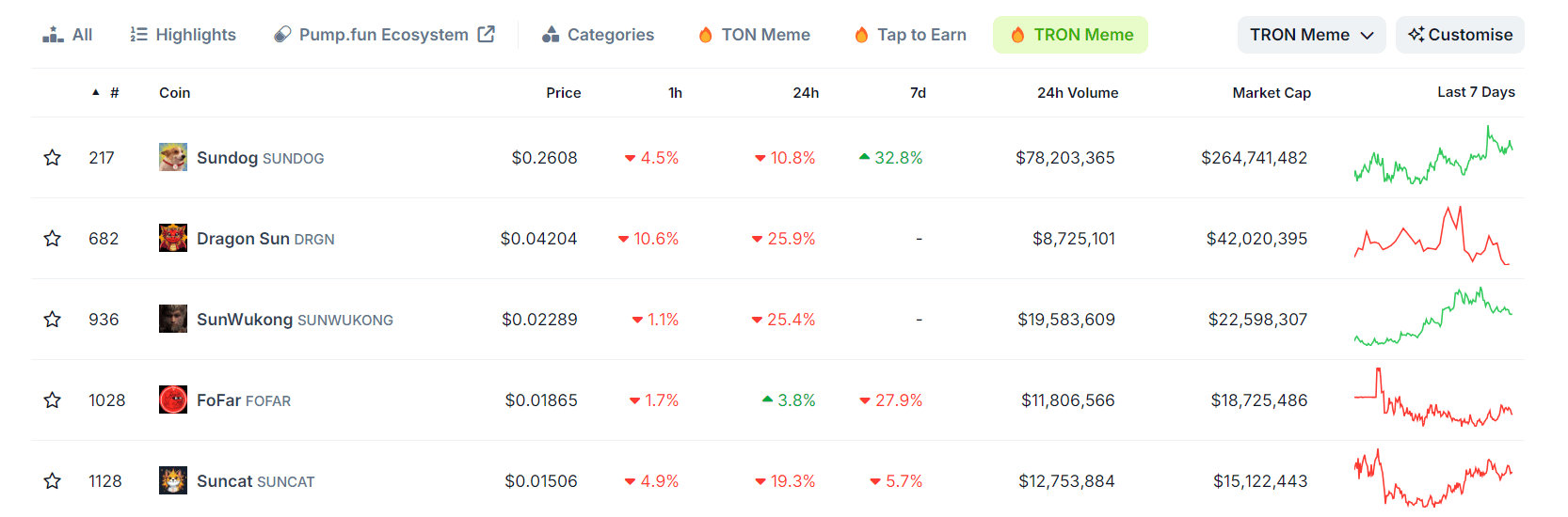 Under are the stats of those TRON meme cash by Coin Market Cap. From the chart, we are able to see that: