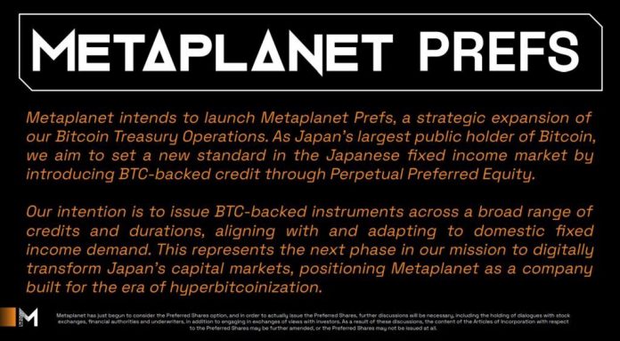 - “Metaplanet Prefs” — a program of Bitcoin-Backed Most well-liked Shares designed to scale its Bitcoin treasury operations.