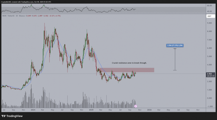 From a technical perspective, many analysts consider NEAR has been in an accumulation part all through 2025. Michaël van de Poppe states that the market may witness a powerful breakout if the value breaks above the $3.25–$3.50 resistance vary.