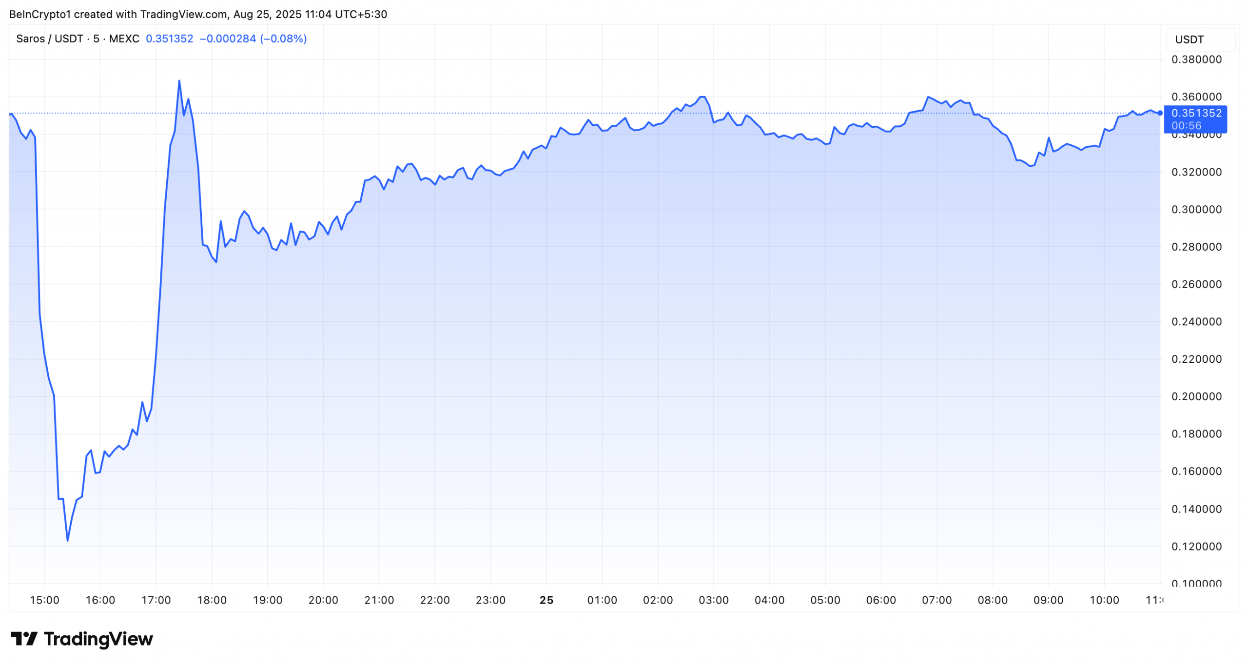 The cryptocurrency Saros (SAROS) skilled a dramatic 70% worth drop on August 24, plummeting to its lowest degree since April 2025.