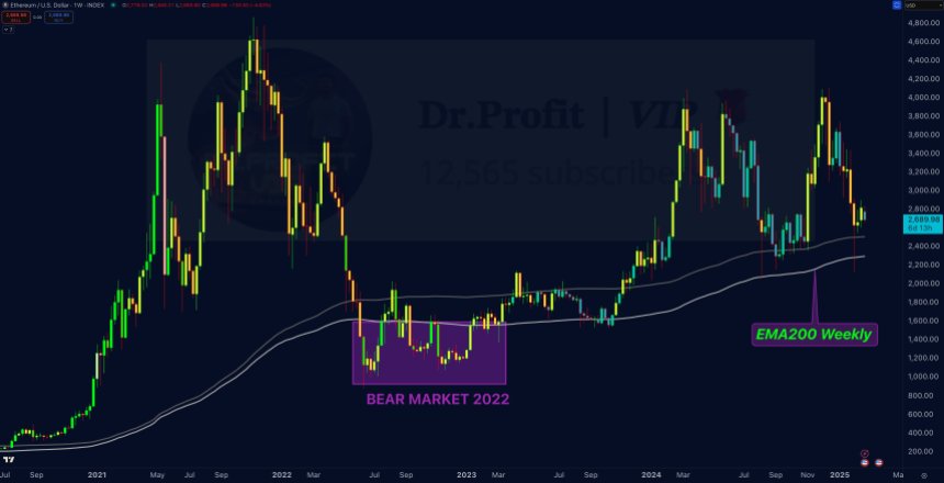 The 200-week Exponential Transferring Common (EMA) has traditionally served as a important assist stage for Ethereum. Throughout previous market downturns, such because the COVID crash in 2020 and the bear market in 2022, the worth has rapidly rebounded after dipping under this key threshold.