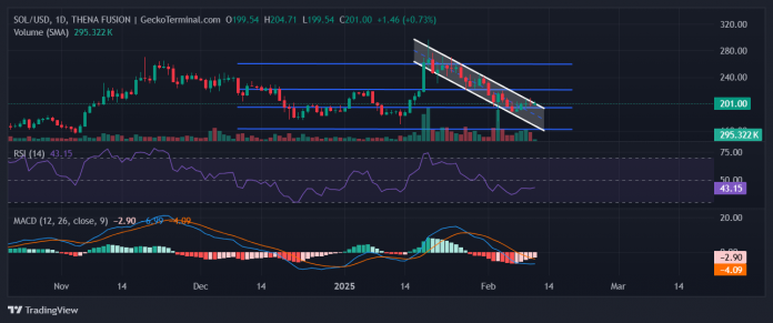 The Solana worth is making an attempt to interrupt out above a medium-term descending channel that has shaped on its charts within the final couple of weeks, GeckoTerminal information exhibits. Ought to the crypto rise above the higher boundary of this detrimental vary, it would attempt to flip the resistance at $223.34 earlier than probably hovering to the resistance at $260.22.