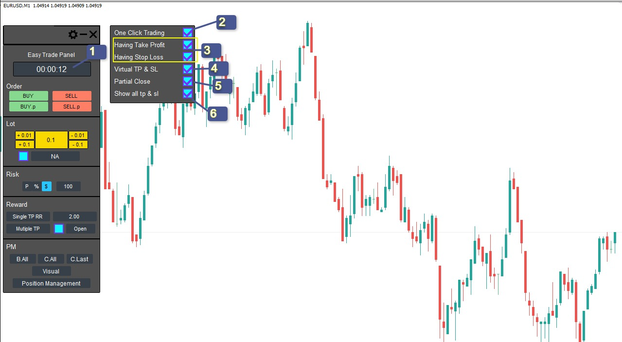 - Take Revenue & Cease Loss – Choice to allow/disable TP & SL execution.