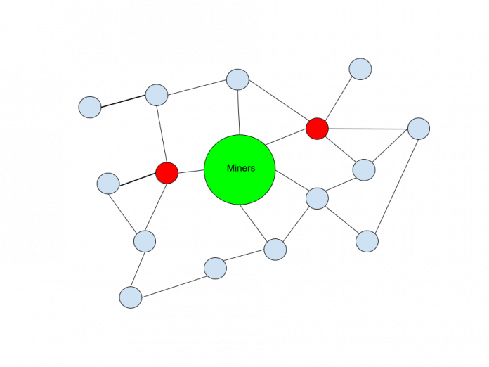 This can be a mannequin of the community wherein the nodes refusing to propagate these transactions are a transparent minority. As you’ll be able to clearly see, any node on the community that accepts them has a transparent path to relay them to the miners. The 2 nodes making an attempt to limit the transactions propagation throughout the community haven’t any impact on their eventual receipt by miners’ nodes.