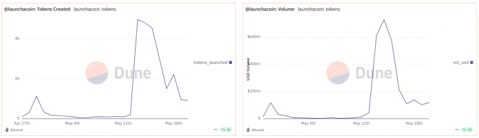 Equally, the variety of newly created tokens per day has fallen from 4,977 on March 13 to 1,134 by Might 20.