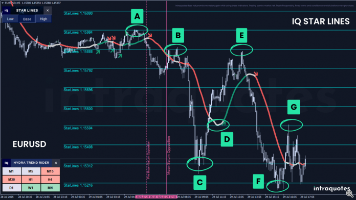 Astrological worth ranges and Moon facets reveal when markets are prepared to maneuver. A robust development indicator exhibits the place that transfer desires to go. Collectively, they create readability: exact entry timing, assured development course, and smarter stop-loss and take-profit ranges. With IQ Star Traces guiding time and ranges, and Hydra Development Rider confirming development course, you’re about to get a strong commerce setup—turning uncertainty into structured, worthwhile selections.
