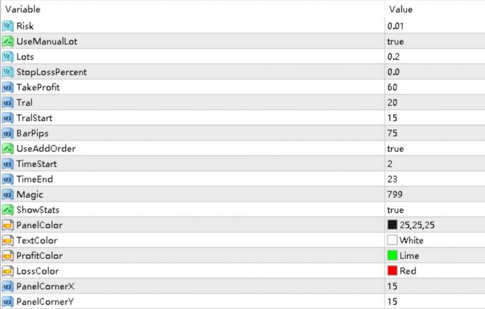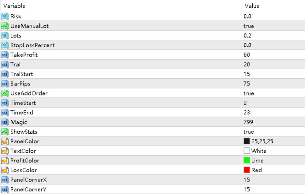 ShowStats | true | Whether or not to show EA statistics panel on chart |