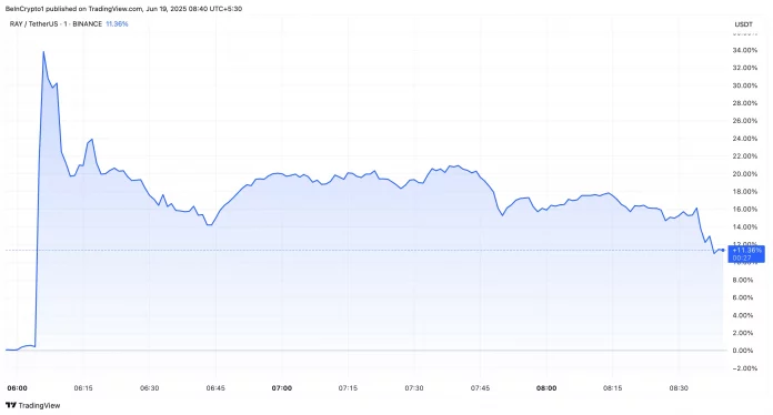 This announcement led to a 34.3% surge within the worth of the RAY token in the course of the early hours of Asian buying and selling. BeInCrypto knowledge confirmed that the value rose from round $2.07 to $2.78 inside minutes. Furthermore, the market capitalization additionally elevated to over $655 million.