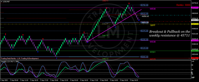 The weekly pivot at 45,471 is now the instant degree to observe. Holding above would recommend a consolidation part with scope to retest 45,625 and the WR38 zone. A transparent break under, nevertheless, opens draw back targets at 45,375 → 45,250 → 45,229 (WS38).