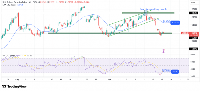 On the technical facet, the USD/CAD worth has punctured the 1.3750 help and is threatening to push beneath the extent once more. It trades far beneath the 30-SMA, with the RSI close to the oversold area, suggesting strong bearish momentum. The worth has fallen sharply because it broke out of its bullish channel.