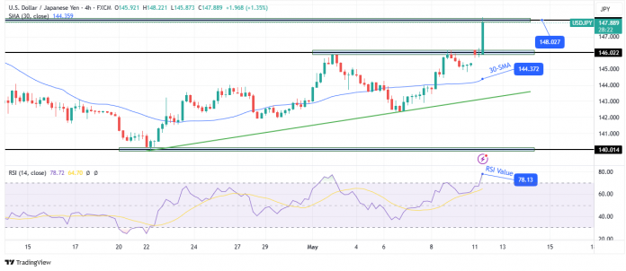 USD/JPY technical outlook: Strong rally meets the 148.02 key stage