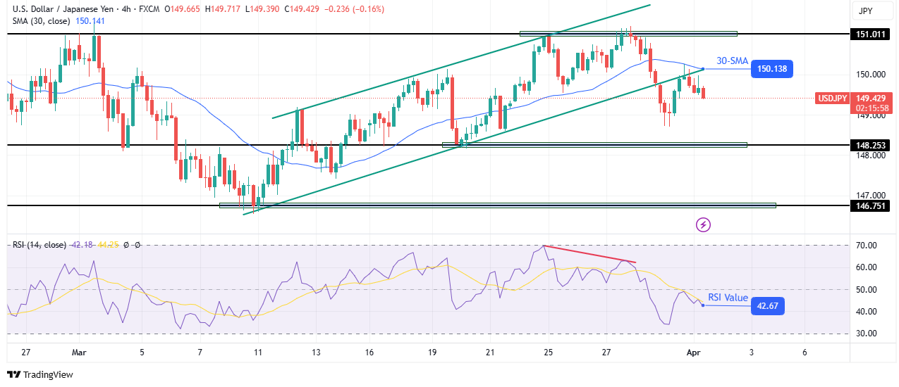 If this occurs, the value will attain decrease assist ranges, together with the 148.25 and 146.75. Then again, bulls will take again management if the value fails to make a decrease low. On this case, USD/JPY would break above the 30-SMA and the 151.01 resistance to make a brand new excessive and proceed the bullish development.