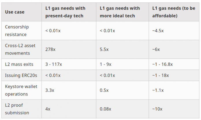 Buterin’s calculations spotlight that regardless of most exercise shifting to L2, sustaining sturdy L1 performance is important to protect censorship resistance, allow environment friendly asset transfers, help mass exits, safeguard token issuance, and facilitate interoperability.
