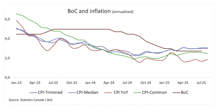 Canada’s economic system contracted by 1.6% within the second quarter, a sharper decline than anticipated, whereas employment fell by greater than 100K in July and August, lifting the jobless price to 7.1%. Dovish forecasts had been bolstered by August inflation figures launched on Tuesday, which got here in higher than anticipated. The Shopper Value Index (CPI) rose by 1.9% YoY, under the two% forecast, whereas the core CPI remained regular at 2.6%.