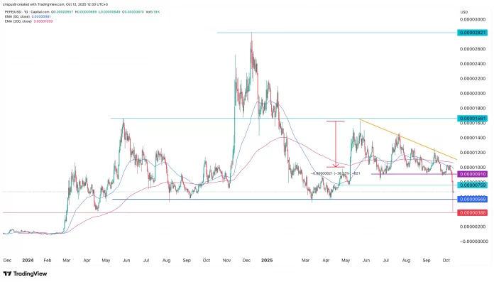 Pepe’s crash coincided with the turbulence within the crypto market after President Donald Trump unveiled new tariffs on China. This announcement resulted in over $19 billion in liquidations and greater than $500 billion in whole losses throughout the crypto market.