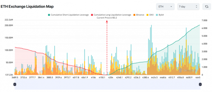 If ETH continues to get well and rallies towards $4,600 this week, potential brief liquidations may attain $5.6 billion. Conversely, if ETH corrects beneath $3,700, an estimated $3.5 billion price of longs might be worn out.