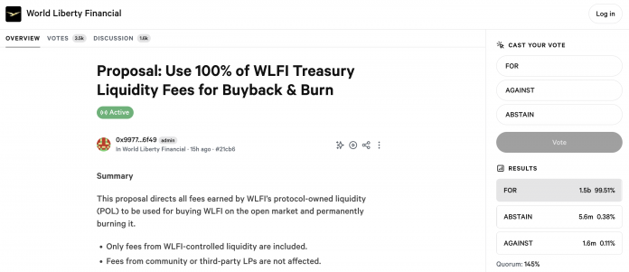 World Liberty Monetary (WLFI) has simply launched a key proposal: redirect 100% of treasury liquidity charges to market-buy WLFI tokens and completely burn them throughout a number of chains. In truth, this route charges – market-buy – everlasting burn strategy is a well known catalyst utilized by tasks like HYPE, PUMP, and TON.