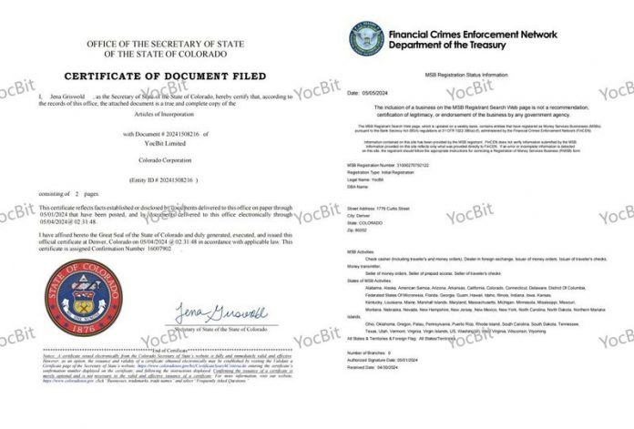 As a pioneer in compliance-driven growth, Yocbit has efficiently obtained a Cash Providers Enterprise (MSB) license issued by the U.S. Division of the Treasury’s Monetary Crimes Enforcement Community (FinCEN), establishing its compliance standing within the U.S. market. This achievement not solely positions Yocbit as a acknowledged professional digital asset buying and selling platform throughout the U.S. monetary system but additionally lays a stable basis for its enlargement into European and world markets.
