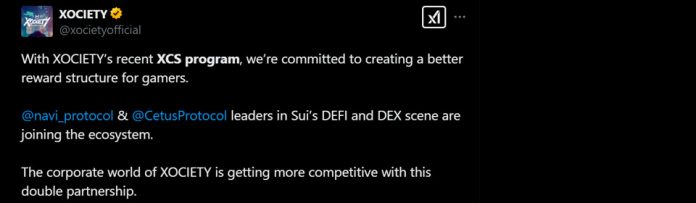- XOCIETY, a flagship sport on the Sui blockchain, has introduced a strategic partnership with Cetus and Navi Protocol to reinforce the gaming expertise on Sui by enhancing DeFi infrastructure, liquidity, and innovation.